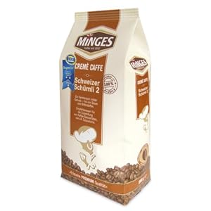 Ein harmonisch milder Genuss - frei von Säure und Bitterstoffen. Empfehlenswert für die Zubreitung von Kaffee-Spezialitäten, wie z.B. Cappuccino. Ausgezeichnet mit dem »Superior Taste Award 2006 und 2007« des »International Taste & Quality Institute« für den besonders guten Geschmack und Qualitätsstandard. Passende Kaffeemühlen für diesen Kaffee: Ascaso Kaffeemühle Grinder, KRUPS SW/CHM KAFFEEMÜHLE, La Pavoni 862432974 Kaffeemühle Jolly Dosato Lusso JDL, Gaggia Kaffeemühle MDF schwarz, Solis 960.77 Kaffeemühle Scala, Bosch MKM6003 Schlagmesser-Kaffeemühle schwarz, DeLonghi KG 39 Kaffeemühle, Severin KM 3872 Kaffeemühle, Severin KM 3878 Mahlwerk-Kaffeemühle, Saeco Kaffeemühle Conica, Alfi Kaffeemühle Aromatico, Tefal 8100.31 Elektrische Kaffeemühle, Braun Kaffeemühle KMM30, Petra M 95 KaffeeMühle, DeLonghi Elektrische Kaffeemühle KG 59, Braun AromaGourmet KSM 2 Kaffeemühle, Saeco Kaffeemühle Lux, KitchenAid Artisan KCG 100 Kaffeemühle, Siemens MC23200 Schlagmesser-Kaffeemühle Röstung nach schweizer Art und Qualität Diese edle Mischung zeichnet sich durch intensives Aroma und herrliches Crema aus. Nur beste Bohnen mit fülligem Körper werden nach typisch traditioneller schweizer Rezeptur geröstet. Vom ersten Schluck an überzeugt dieser Kaffee mit seinem reichen und harmonischen Aroma und einem perfekt ausbalancierten Geschmacksspektrum, das von angenehm nussigen und fruchtigen Anklängen bis zu weichen Holznoten reicht. Im Nachgeschmack zeigt er sich rund, elegant und lang anhaltend. Minges Kaffee, Beutel mit 1000 g schweizer Schümli II Bohnen aus 100% Arabica ist eine Komposition aus erlesenen mittel- und südamerikanischen Arabica-Kaffees. Diese edlen Sorten garantieren puren Kaffeegenuss für die Liebhaber eines feinen, milden Kaffeearomas. Was genau ist eigentlich Schümlikaffee? Schümlikaffee oder Café Crème ist der schweizer Ausdruck für einen Kaffee aus dem Vollautomaten (Kolbenmaschine), die es in unzähligen Variationen gibt z.B. von Jura, Saeco, Cimbali u.a. Durch den Druck des Wassers auf den Kaffee entsteht in der Tasse eine leichte Schaumhaube auf dem Kaffee. Für den Laien sieht es im ersten Moment so aus, als wäre bereits Milch im Kaffee.